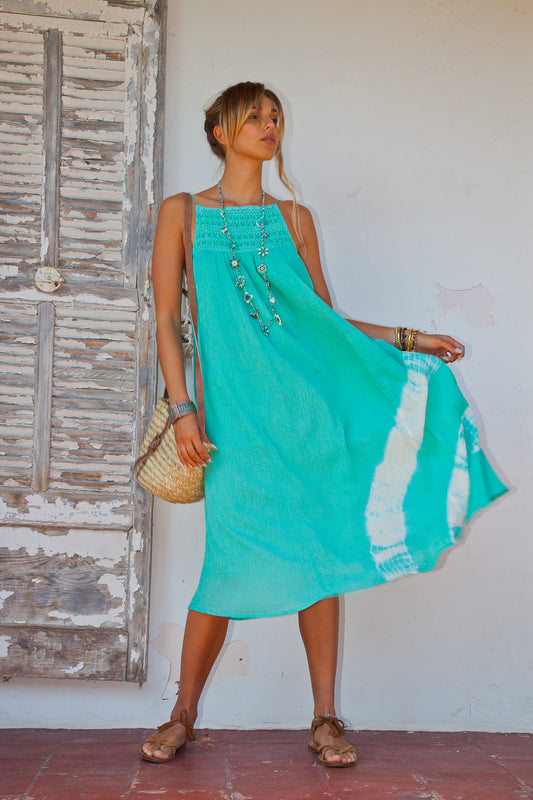En venteCamelia long Dress - Tie & Dye Aqua